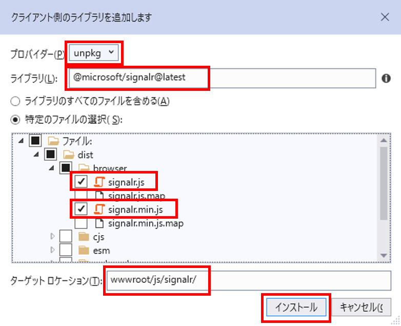 @microsoft/signalr@latest - [特定のファイルの選択]を選択する