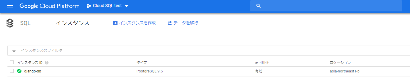 作成が完了するとSQLインスタンス一覧に表示される。