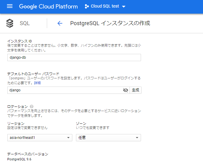 Cloud SQLインスタンスを作成 Link to heading