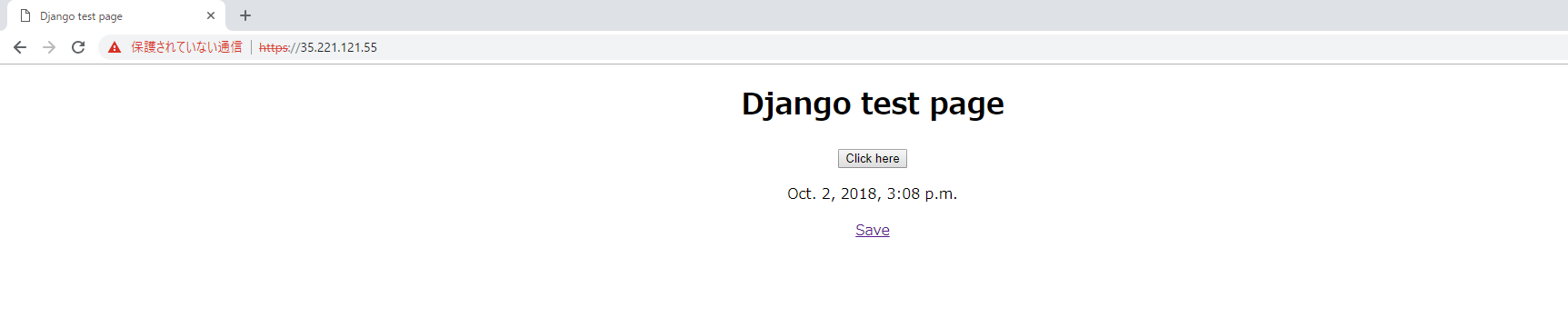「Save」をクリックすると、その時間をDBに保存して画面に表示するだけのシンプルなもの。