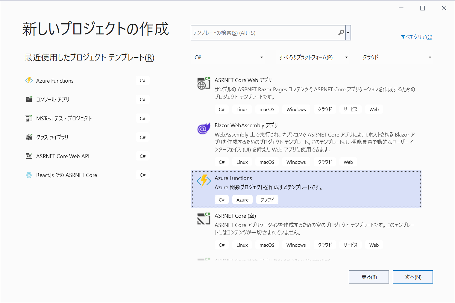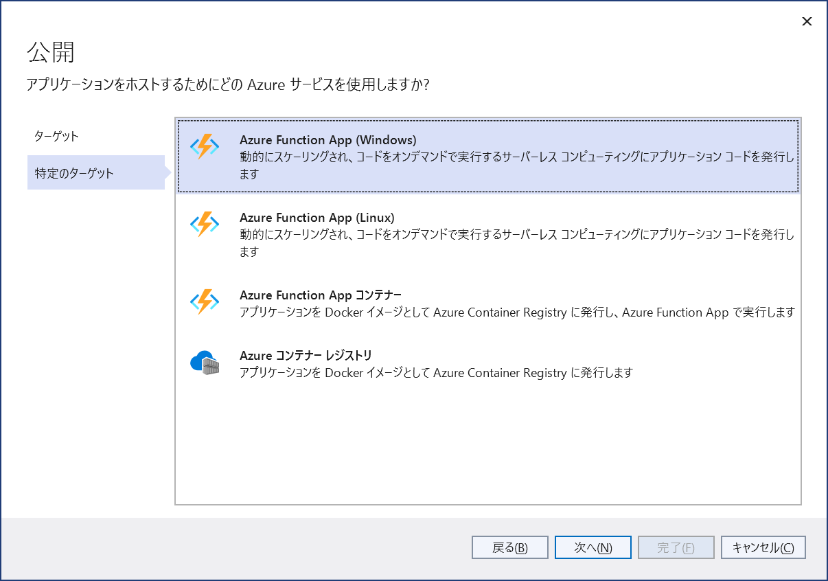 - [Azure Funciton App (Windows)] を選択