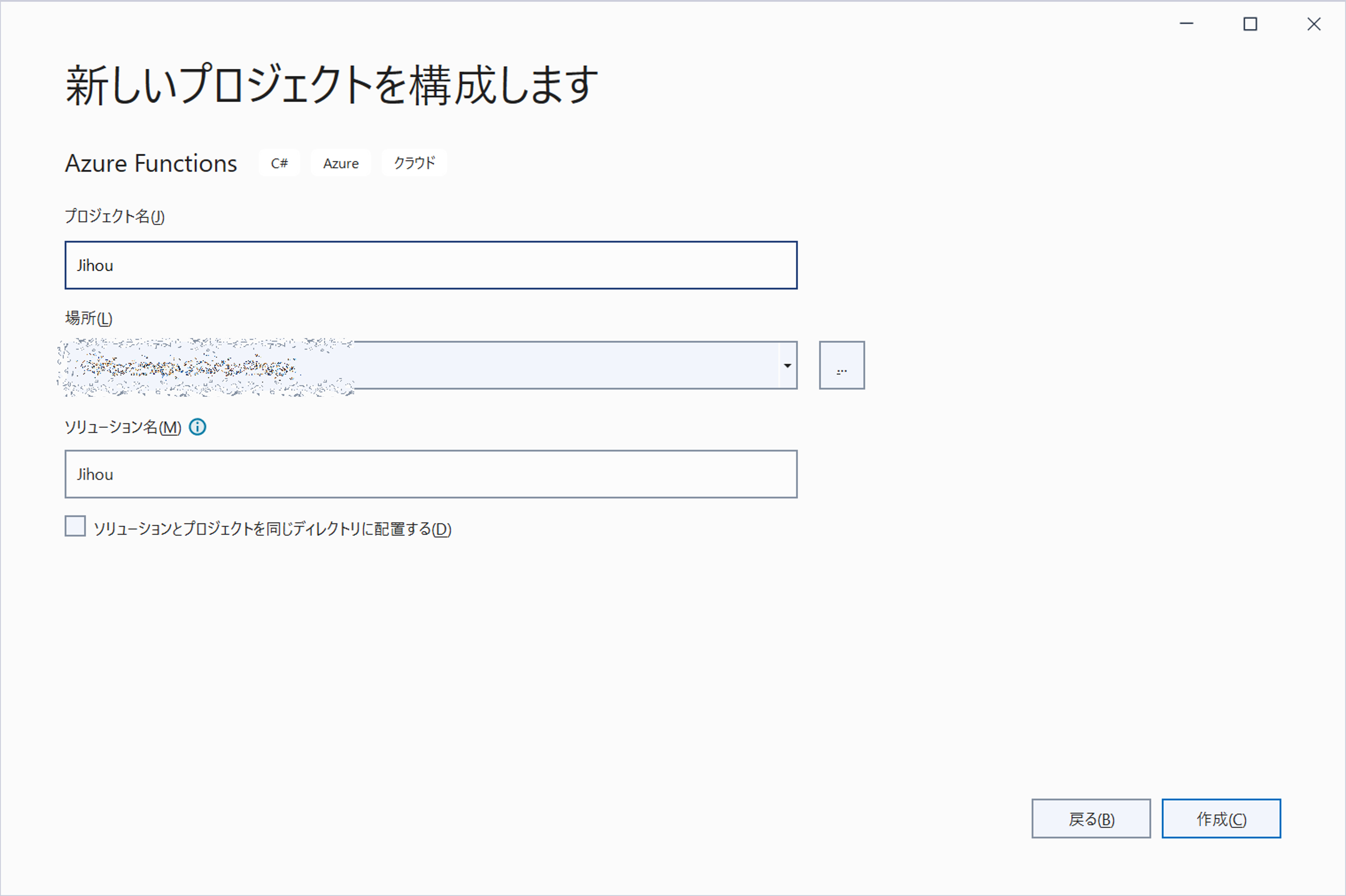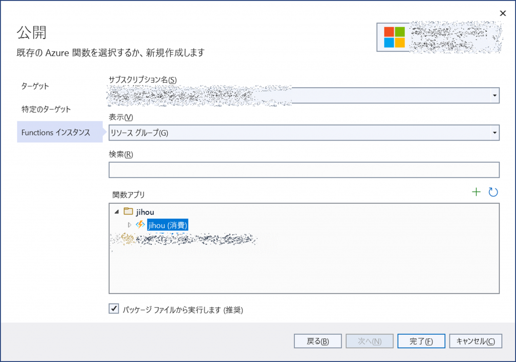 - 今回のケースでは関数アプリ名は [jihou] とした