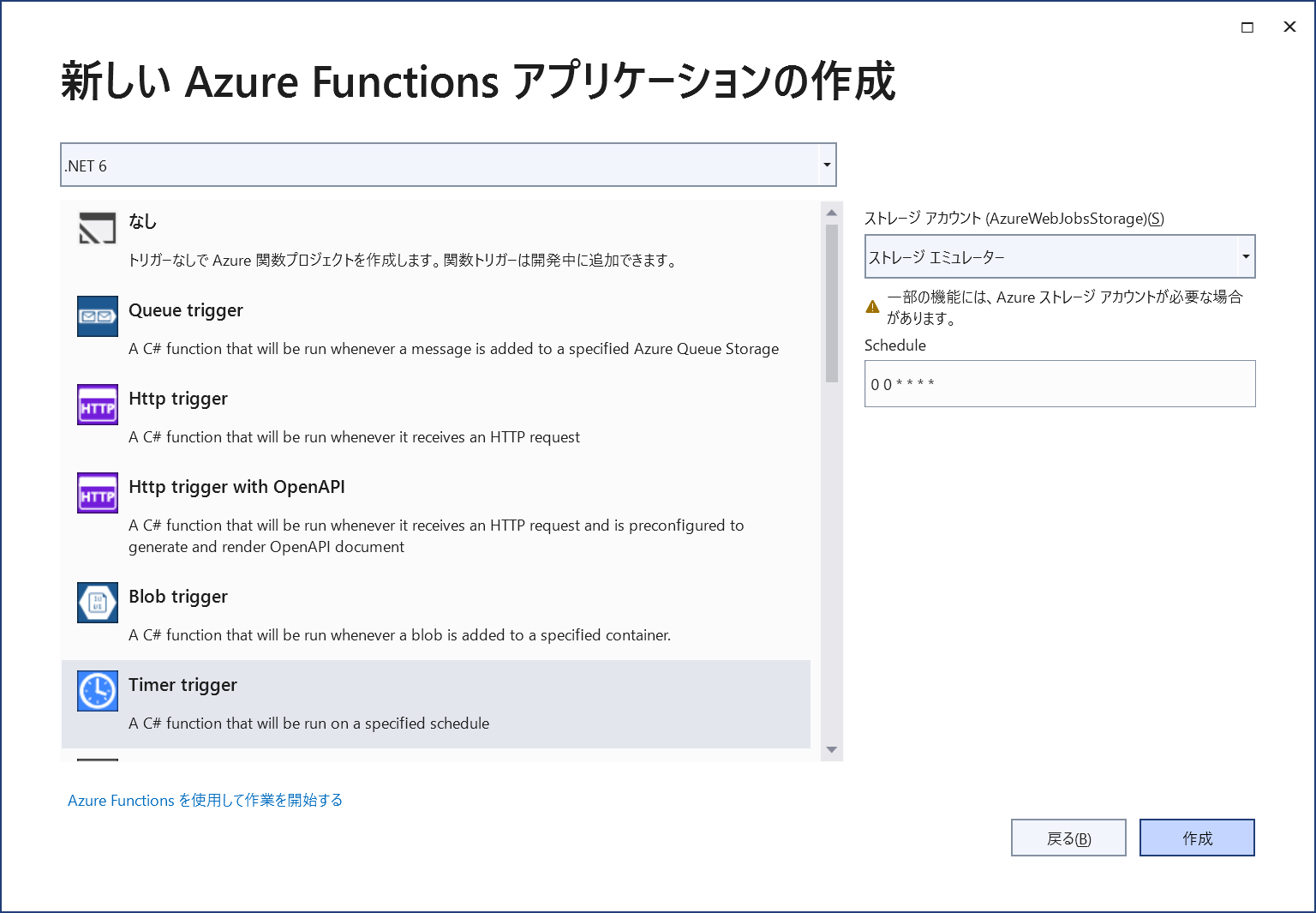 - [Timer trigger] を選択