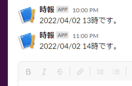 1時間に1回slackに通知が来ます。