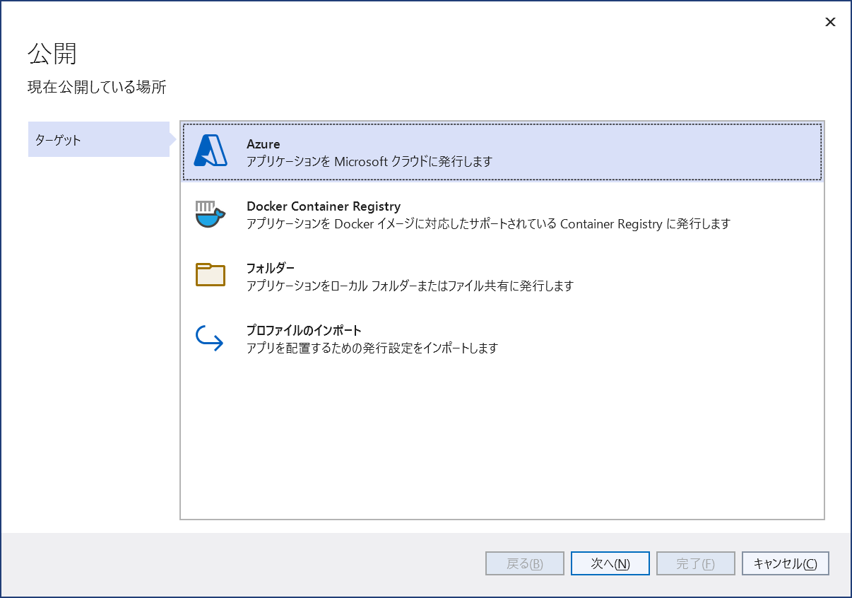 - ターゲットとして [Azure] を選択