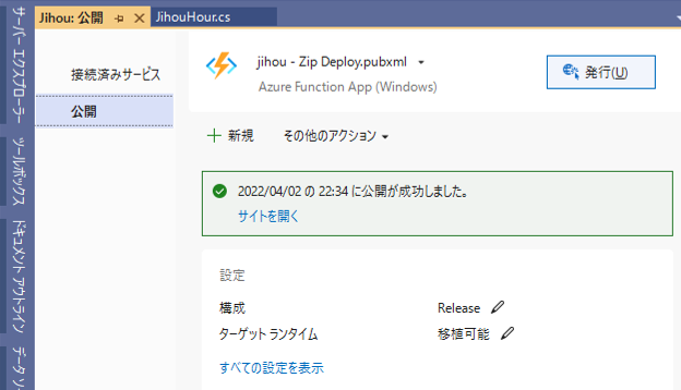 - [発行] を押すとAzureにデプロイされる