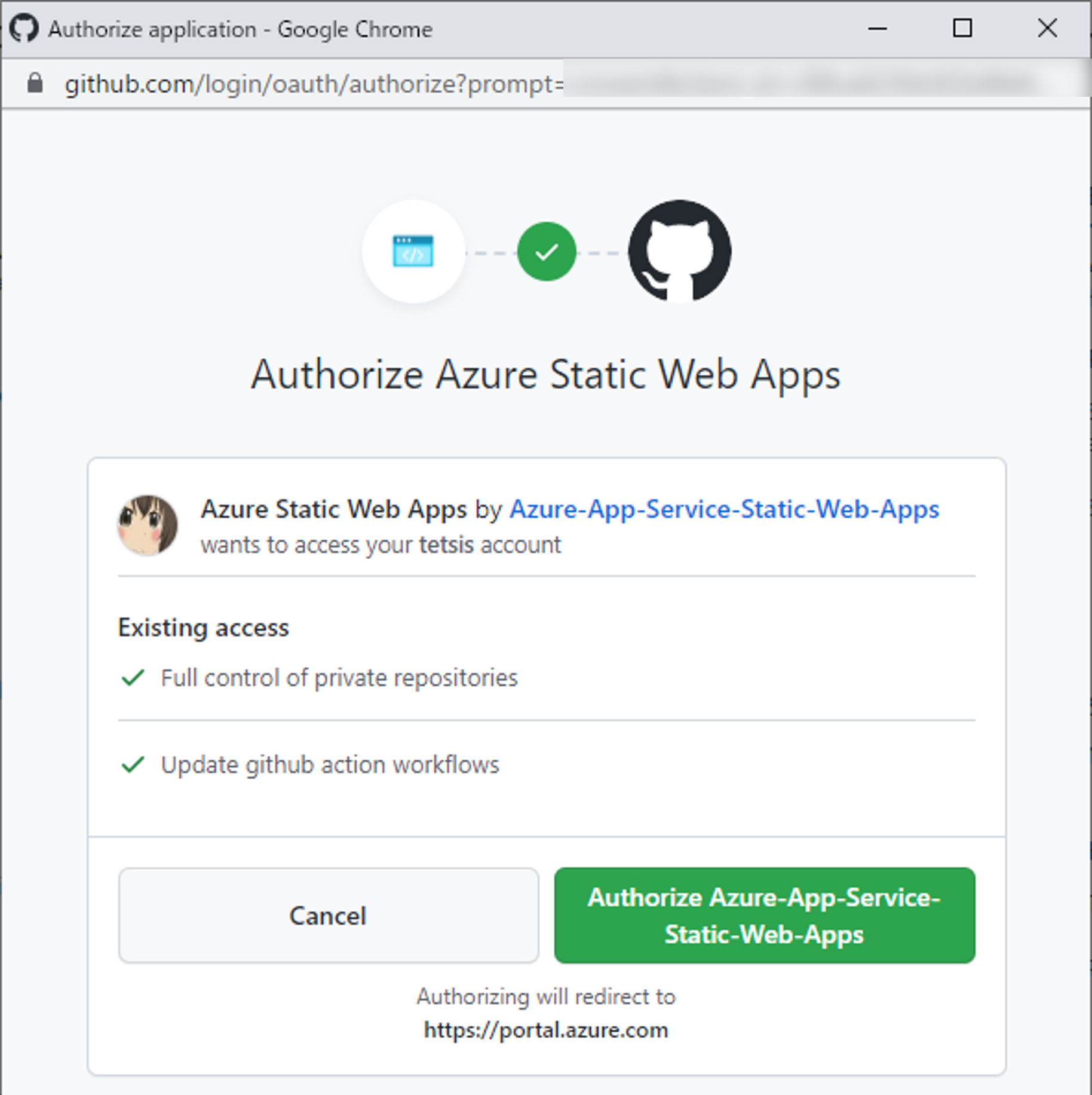 - [Deployment details] は [GitHub] にして、 [Sign in with GitHub] からGitHubアカウントを認証する